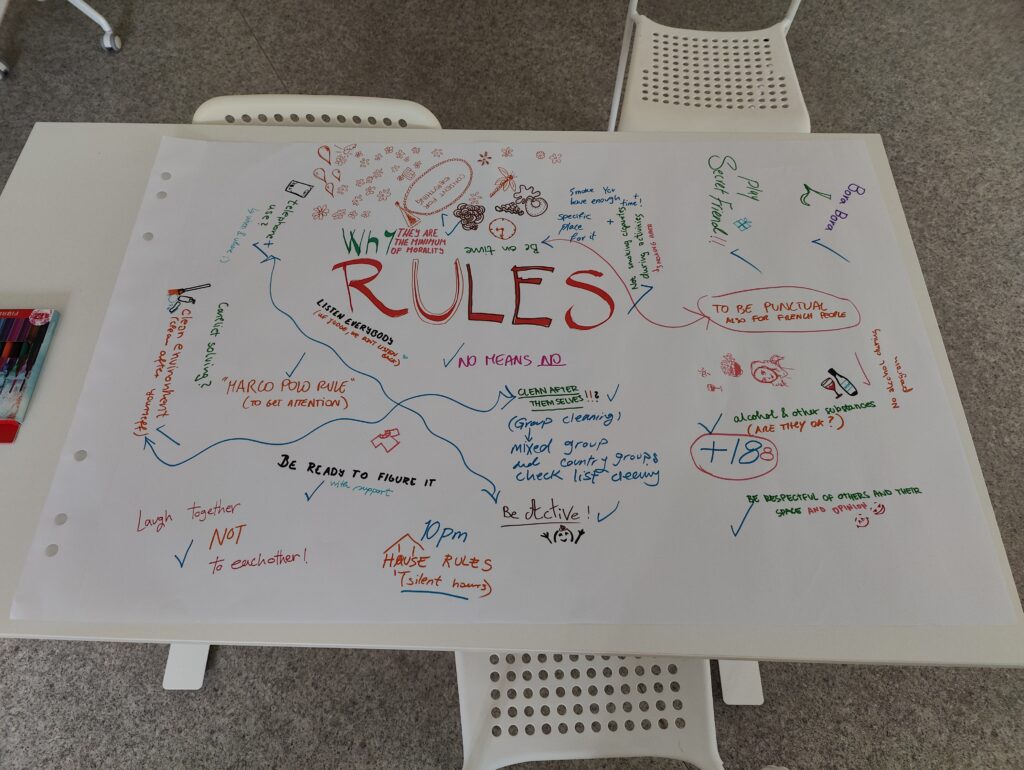 In to smo tudi počeli, cel delovni vikend so debatirali o dogovorih, vrednotah, ki jih želimo živeti na izmenjavi, o vlogi mladinskega vodje, postavljali urnik, sestavljali checklisto pomembnih informacij za udeležence, … Ob tem smo izkoristili trenutke tudi za ogled koče na Pšenku, kamor se bodo udeleženci odpravili med izmenjavo na dvodnevni “sleepover”, saj jim res želimo prikazati to prečudovito naravo in nekaj trenutkov posvetiti odpiranju misli na svežem zraku.
